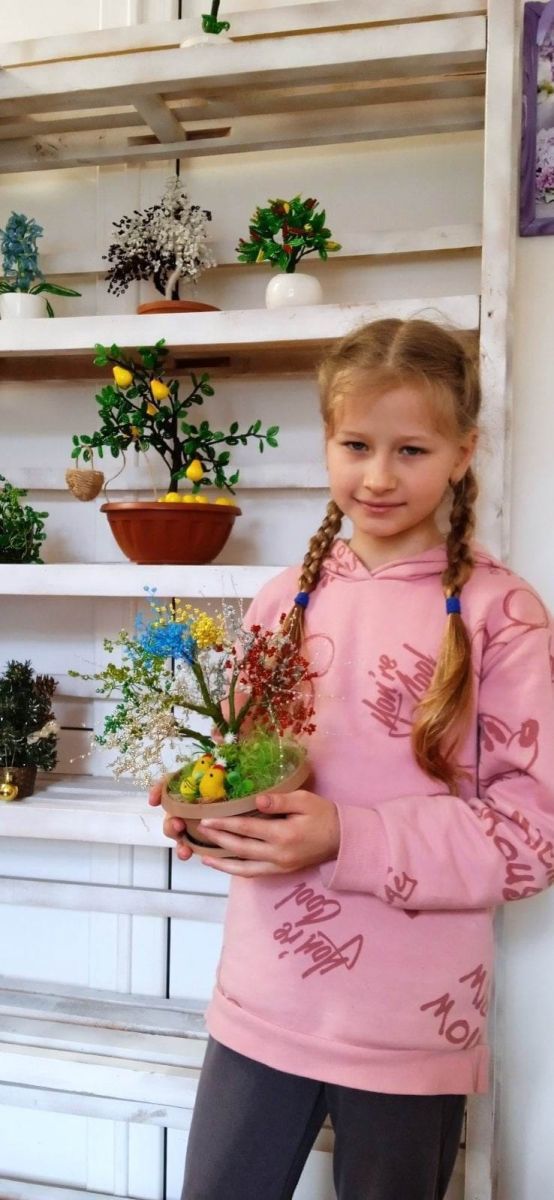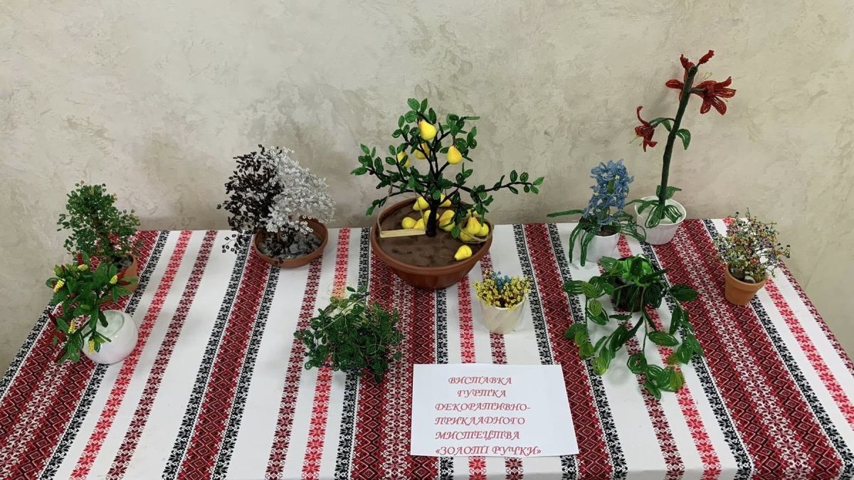 7. Гурток декоративно-прикладного мистецтва «Золоті ручки» (бісероплетіння ). Гурток включає в себе 10 учасників. Керівник Бухарова О.В. На гуртках декоративно-прикладного мистецтва діти виготовляють вироби та поробки, які згодом виставляються під час благодійних заходів на ярмарку та виставки, а також гуртківці не одноразово приймали участь у плетені маскувальних сіток та виготовленні патріотичних браслетів для ЗСУ.