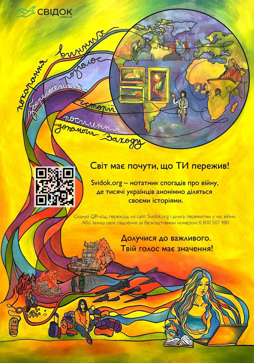 Svidok.org – це онлайн-платформа, що є єдиним сховищем спогадів українців про війну, де кожен має можливість у форматі особистого воєнного щоденника зафіксувати та зберегти власний досвід життя під час повномасштабного вторгнення Російської Федерації в Україну.